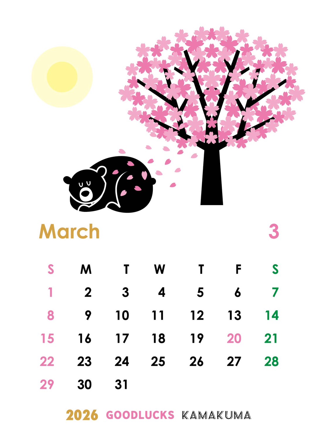 セブンイレブンのネットプリントに2026年3月のデスクトップカレンダーのデータをアップいたしました。
